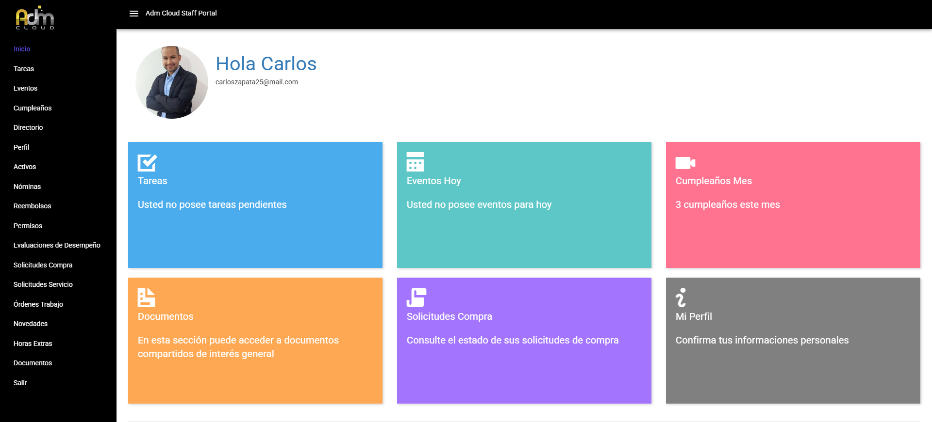 Para acceder al Portal de Colaboradores, tus empleados pueden utilizar la dirección https://staffportal.admcloud.net/ e ingresar con el correo electrónico que le asignaste al crearlos en el sistema.